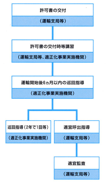 | 適正事業実施機関の仕事 (貨物自動車運送事業法第39条、第39条の2、第39条の3) 適正化事業実施機関は、次の活動を行うに当たり、事業者に対して必要な資料の提出等を求めることができ、当該事業者は、この求めに対して正当な理由なく拒んではならないことになっています。 1. 貨物自動車運送事業者に対する指導